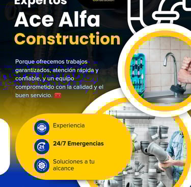 En Ace Alfa Construction, Somos un equipo especializado en reparaciones, mantenimiento, servicio de albañilería, plomería, etc. con años de experiencia.